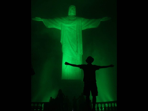 A iluminação verde do Cristo Redentor faz parte de um programa global para promover a Irlanda.