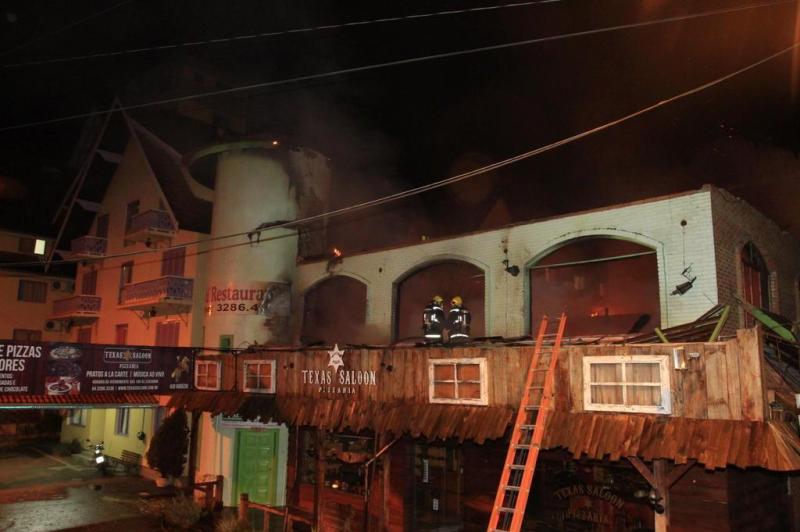 Incêndio na Pizzaria Texas Saloon atinge parte do Hotel Estrelas da Serra em Gramado RS... Não há feridos...