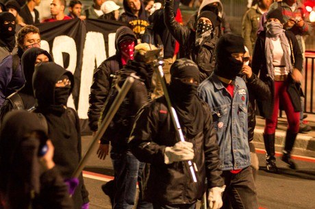 Manifestantes depredam bancos na avenida Paulista em protesto contra governador do Rio